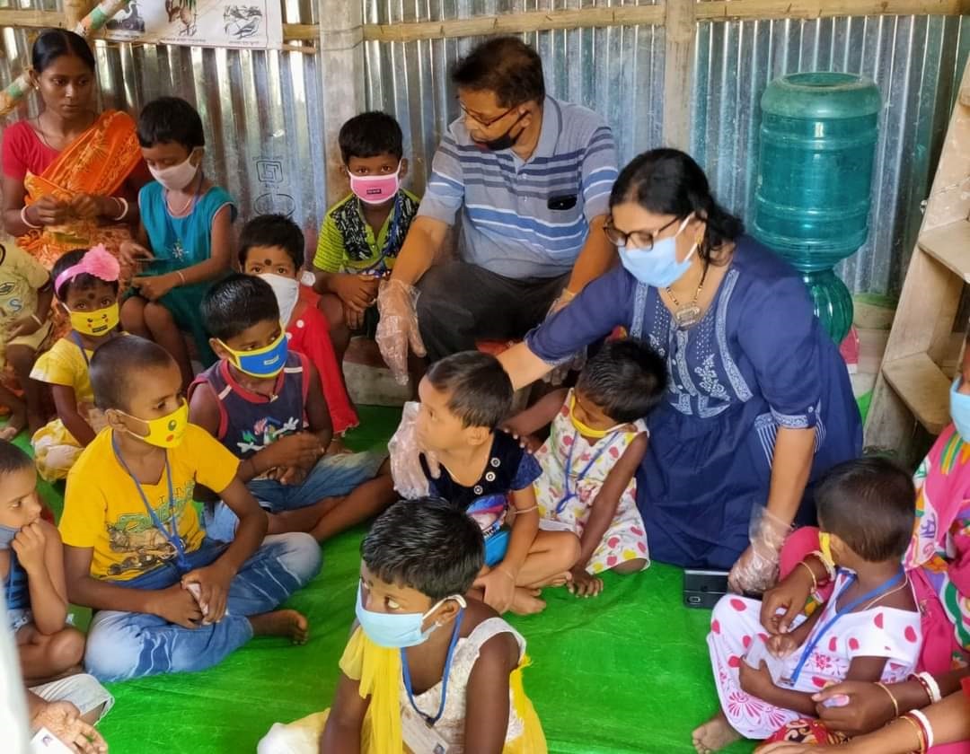 In the pandamic period we provided them Sanitize materials, masks, etc. Before Durga Puja Festival we provided them new dress.